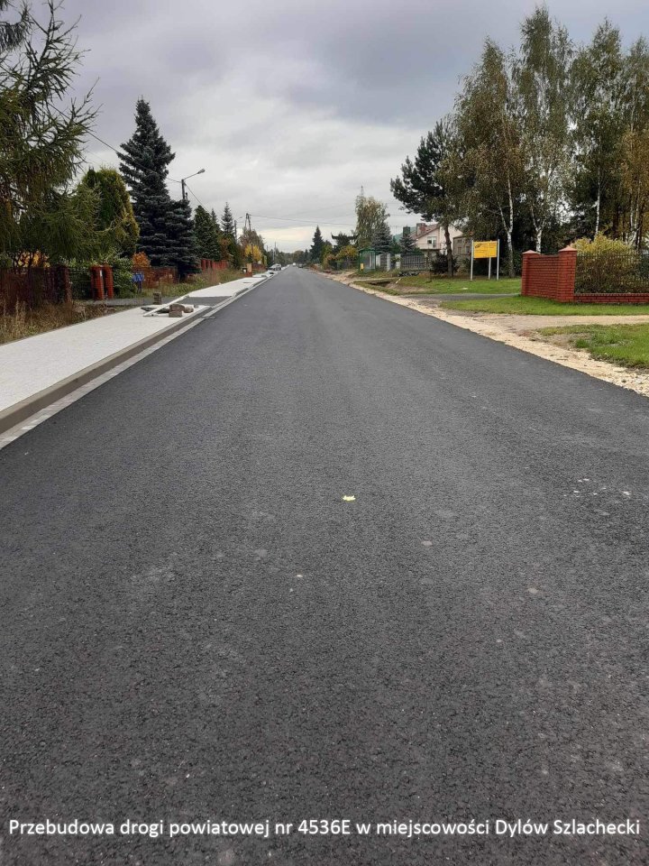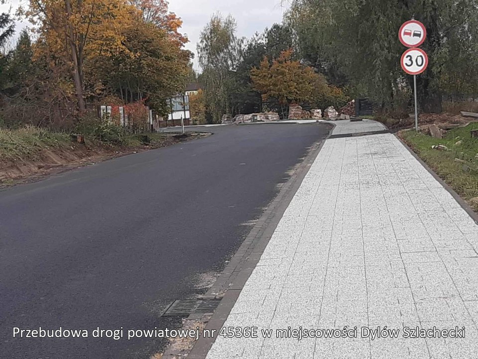 I to na co wszyscy czekaliśmy, czyli przebudowa drogi powiatowej nr 4536E w miejscowości Dylów Szlachecki (prawie 4 kilometry), która zostanie niedługo zakończona. Fatalna, nierówna i dziurawa droga to już przeszłość. Ciągnące się od lat problemy komunikacyjne sprawiały, że już chyba nikt nie wierzył, że droga doczeka się takiej przebudowy. W ramach zadania została wykonana nowa jezdnia, odwodnienie, zjazdy do posesji, ułożono nowy chodnik, wykonano ścieżkę rowerową.